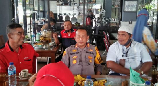 BELAWAN-Kapolres Pelabuhan Belawan AKBP MR Dayan SH MH Coffe Morning bersama wartawan yang tergabung dalam Belawan Pers Club (BPC), Kamis (26/3/2021).
