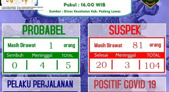 MitaNews, Padanglawas Saat ini warga Kabupaten Padang Lawas Sumatera Utara yang Positif terpapar virus Corona terus menurun. Seiring dengan terus meningkatnya status