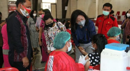 TAPANULI UTARA – Ketua TP-PKK Taput Satika Simamora MM didampingi Pimpinan Perangkat Daerah terkait meninjau pencanangan vaksinasi untuk ibu hamil dan korban