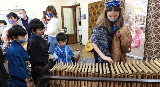 Tashkent, Uzbekistan – Gamelan Jawa, Angklung, Payung Bali, Wayang Golek, Topeng Bali, Patung Jatayu Bali, Batik, pakaian adat nusantara, miniatur boneka berkostum