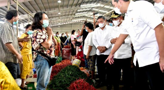 MEDAN – Gubernur Sumatera Utara (Sumut) Edy Rahmayadi mendampingi Menteri Perdagangan ( Mendag ) Muhammad Lutfi meninjau Pasar Rakyat Jawa Belawan Kota