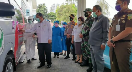KARO – Bupati Karo Terkelin Brahmana, SH, MH launching mobil tes Pacar (polymerase chain reaction) atau Mobile Combat Covid-19 sebagai sarana mempermudah