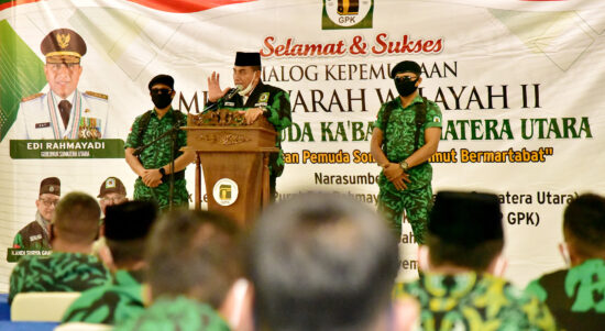 SUMUT – Gubernur Sumatera Utara Sumut (Gubsu) Edy Rahmayadi menyampaikan sambutan sekaligus refleksi dalam acara Musyawarah Wilayah (Muswil) II/2020 Gerakan Pemuda Ka’bah