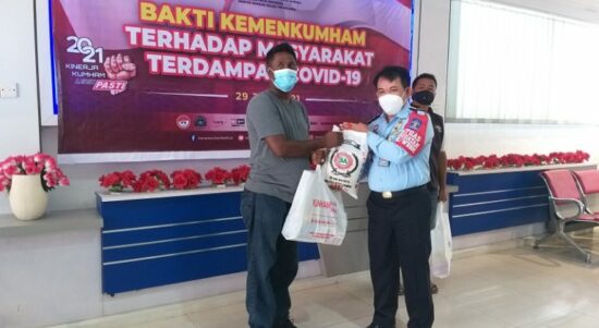 MEDAN – Menindaklanjuti arahan Menteri Hukum dan HAM, Yassona Laoli, Kantor Imigrasi Kelas I TPI Polonia Sipolan menyerahkan 50 paket sembako pada