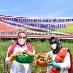 KARO – Panen perdana Gubernur Sumatera Utara (Sumut) Edy Rahmayadi bersama para petani mengambil hasil panen kentang di Desa Gung Pinto, Kecamatan