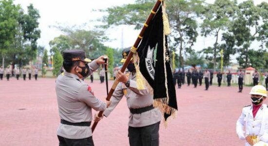MEDAN – Kapolda Sumut, Irjen Pol RZ Panca Putra Simanjuntak menerima Pataka Satya Bakti Jaya. Dari Irjen Pol Martuani Sormin di Lapangan