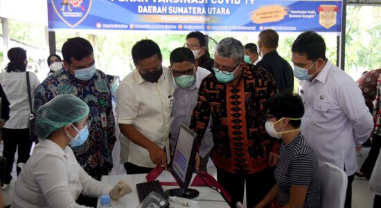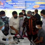 MEDAN – Satuan Tugas (Satgas) Penanganan Covid-19 Sumatera Utara (Sumut) melakukan Pencanangan Pekan Vaksinasi Covid-19 Daerah Sumatera Utara, di Pendopo Universitas Sumatera