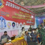 MEDAN – Petugas Lantamal I/ Belawan melaksanakan vaksinasi terhadap 500 anggota Tenaga Kerja Bongkar Muat (TKBM) Primer Koperasi Upaya Karya Pelabuhan Belawan
