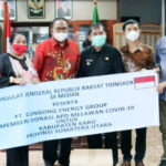KARO – Konjen RRT (Konsulat Jenderal Republik Rakyat Tiongkok) di Medan beserta PT. Cungcong Energy Group memberikan bantuan masker kepada Pemerintah Kabupaten