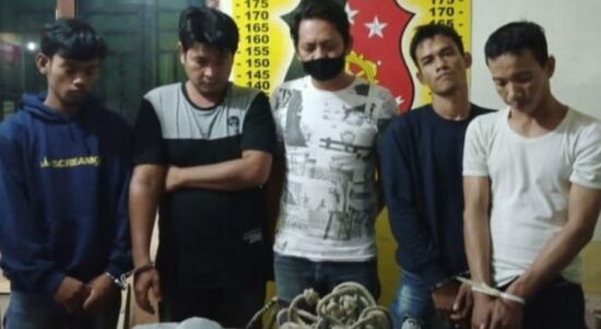 PERDAGANGAN – Personil Satreskrim Polsek Perdagangan berhasil meringkus lima orang pelaku spesialis pencurian sarang burung walet di wilayah Perdagangan, Jumat (16/4/2021), pukul