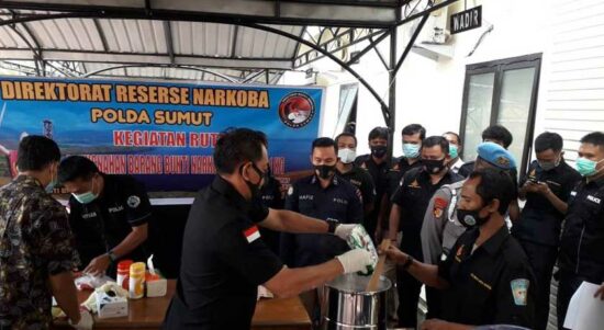 MEDAN – Direktorat Reserse Narkotika Polda Sumut musnahkan barang bukti 3,524,19 gram sabu dan 498 Butir ekstasi. Barang haram itu tangkapan sejak Juli