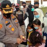 BATUBARA-Kapolres Batubara AKBP Ikhwan Lubis memimpin pemberian bantuan makanan kepada pengungsi Rohingya yang di karantina di RSUD Batubara.