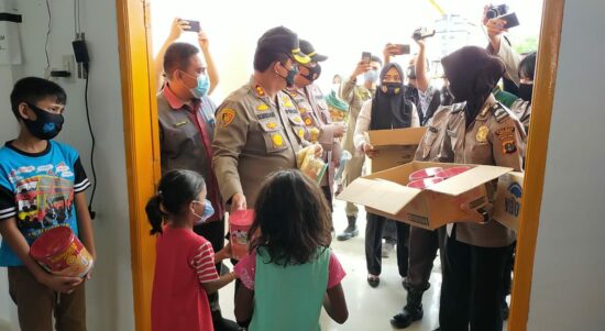 BATUBARA-Kapolres Batubara AKBP Ikhwan Lubis memimpin pemberian bantuan makanan kepada pengungsi Rohingya yang di karantina di RSUD Batubara.