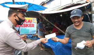 TANJUNG BALAI – Kapolres Tj. Balai melaui Kasat Lantas AKP HW SIAHAAN SH bagi masker kepada masyarakat Tj. Balai sebanyak 50 Lembar , di