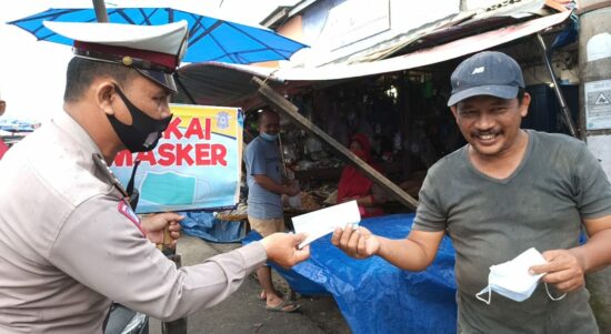 TANJUNG BALAI – Kapolres Tj. Balai melaui Kasat Lantas AKP HW SIAHAAN SH bagi masker kepada masyarakat Tj. Balai sebanyak 50 Lembar , di