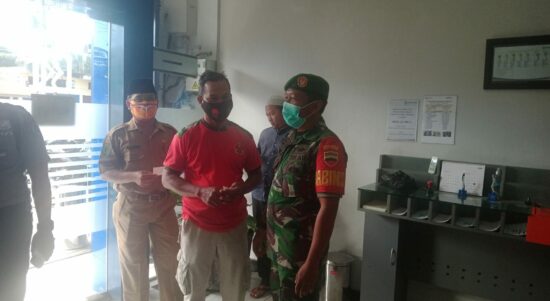 Sosa .Siberindo.co | Babinsa Koramil 09/Sosa Kodim 0212/Tapsel Serda Andik Santoso melaksanakan kegiatan penegakan protokol kesehatan (prokes) Covid -19 di Bank Unit