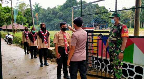 Babinsa Koramil 19/Siais Pantau Sekolah dan Pastikan Kegiatan PTM Sesuai Prokes