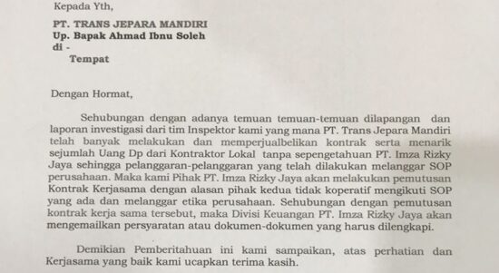 Melanggar SOP Perusahaan, PT IRJ Putuskan Kontrak Kerjasama dengan Sejumlah Subkon