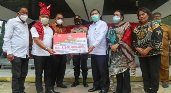 KARO, SUMUT – Kementerian Sosial menyalurkan bantuan isi hunian tetap (huntap) kepada 892 KK korban bencana Erupsi Gunung Sinabung yang telah