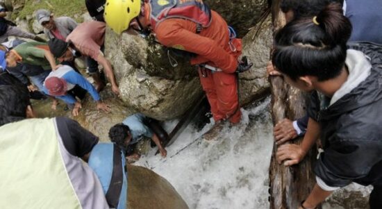 HUMBAHAS – Sungai Sirahar makan korban. Tim SAR gabungan yang menemukan jenazah mahasiswi Unimed yang hanyut terbawa arus Sungai Sirahar di Desa
