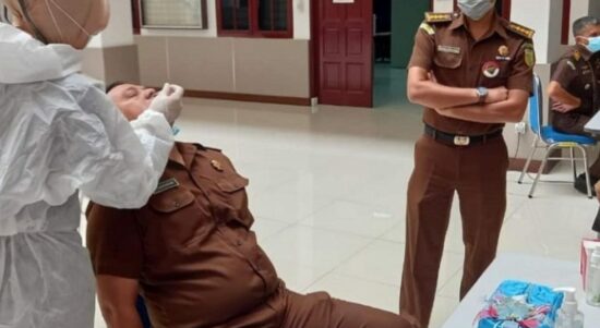 MEDAN – Kejaksaan Tinggi Sumatera Utara Kejati Sumut kembali melakukan test swab antigen Covid-19 terhadap seluruh jaksa dan pegawai di lingkungan tersebut,