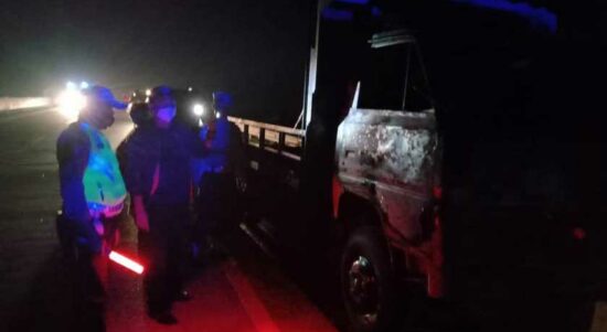 SERDANG BEDAGAI – Diduga Korsleting, Mobil truk trado Colt disel dengan nomor Polisi BK 8087 TL di ruas Jalan Tol Medan –