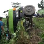 BATUBARA – Diduga dalam kondisi mabuk tuak sehigga tidak mampu mengendalikan laju kendaraan yang dikendarainya, sopir truk tangki Mitsubishi Fuso, BM 8316 RU