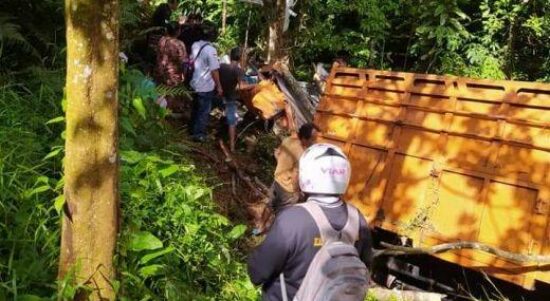 TAPANULI TENGAH – Truk terjun bebas di wilayah Tapanuli Tengah. Satu unit mobil truk fuso pengangkut pupuk dengan nomor polisi BM 8550