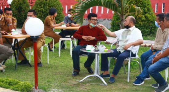 TAPANULI UTARA – Bupati Tapanuli Utara Drs Nikson Nababan MSi kunjungi sekaligus launching usaha resto cafe anak muda Tarutung di Menara Lonceng