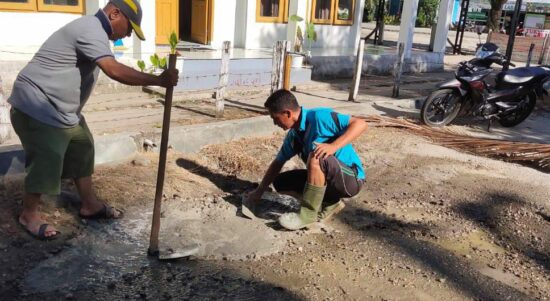 ACEH SINGKIL – Masyarakat melakukan gotong royong memperbaiki jalan menuju pintu masuk ke Wisata Pantai Cemara Indah (PCI) lorong IV Desa Ketapang