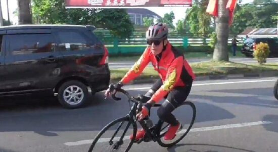 MEDAN – Menteri Hukum dan HAM Yasonna Laoly bersepeda bersama Wali Kota Medan Bobby Nasution serta kader PDIP lainnya. Rombongan menempuh jarak