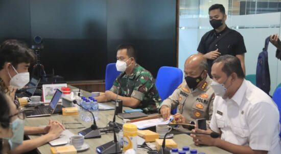 BEKASI-Pelaksana Tugas (Plt) Wali Kota Bekasi Tri Adhianto didampingi Dandim 0507/Bekasi Kolonel Arm Iwan Aprianto, Kapolres Metro Bekasi Kota Kombes Pol Hengky,