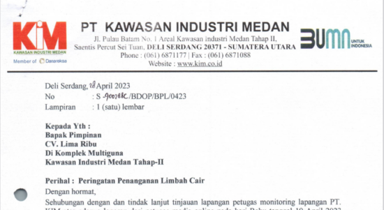 Kadis LHK Sumut Proses CV Lima Ribu Diduga Cemari Lingkungan, PT KIM Persero Kirim Surat Peringatan