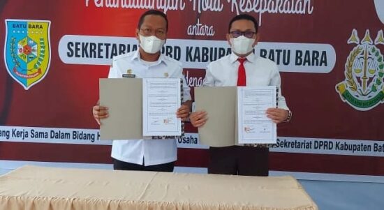 TALAWI-Sekretariat DPRD Agus Andika melakukan nota kesepakatan (MoU) dengan Kepala Kejaksaan Negeri (Kajari) Batu Bara Amru E. Siregar, SH MH, Rabu (20/4/2022).