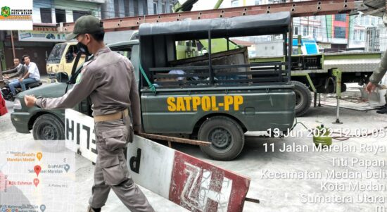 Tak Berizin, Papan Reklame Honda Ditertibkan Tim Gabungan Pemko Medan